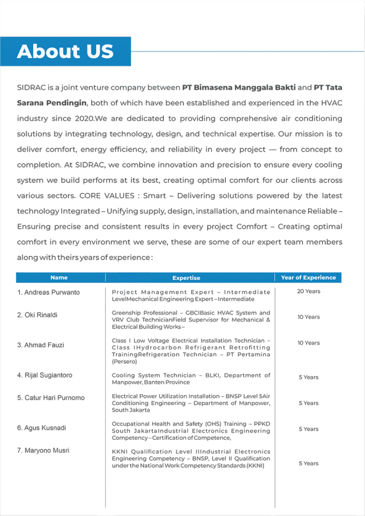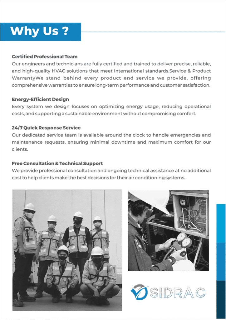 SIDRAC is a trusted HVAC (Heating, Ventilation, and Air Conditioning) specialist providing efficient cooling and air circulation solutions for residential, commercial, and industrial projects. With advanced technology and a team of skilled professionals, we deliver energy-saving systems that ensure long-lasting performance and ultimate comfort in every space.